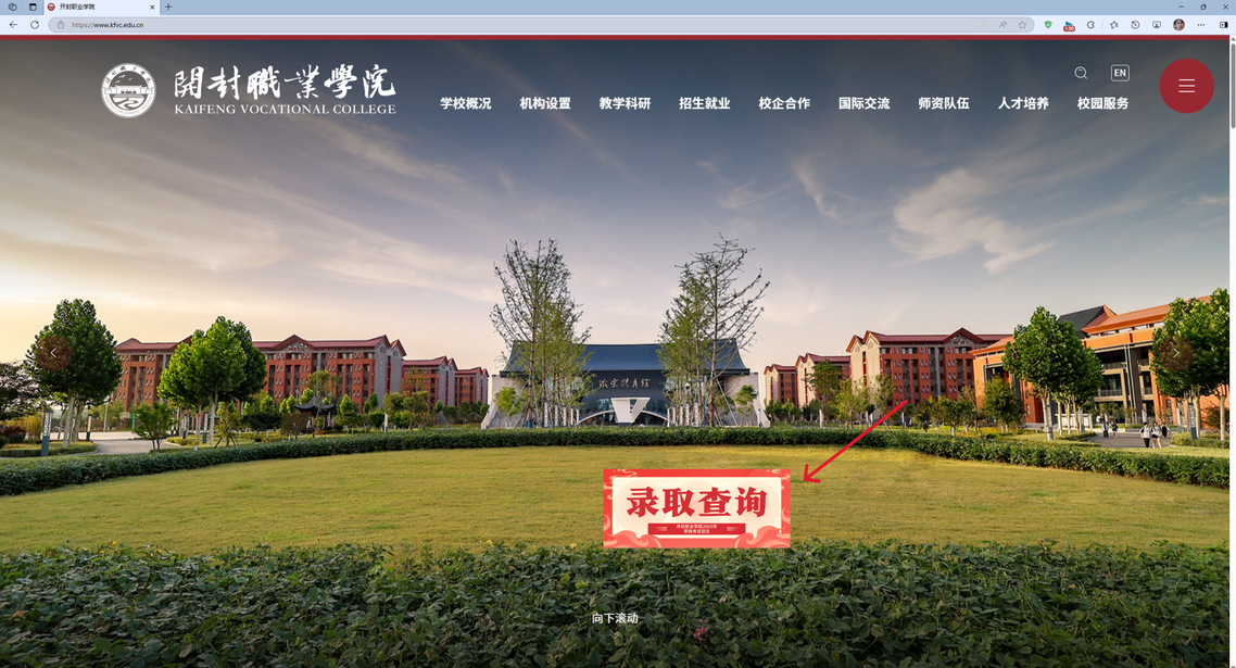 1.进入开封职业学院官网https://www.kfvc.edu.cn/