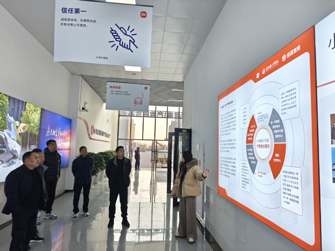 12月6日,在我校南部区招生组的邀请下,驻马店遂平中学董鹤峰副校长及高三班主任一行8人到访我校,在招生办公室李冬俊副主任的陪同下,一行先后参观了我校小米集团(河南)产教融合基地、一站式社区服务中心、两宋文化研究院、铁宏体育馆、京东数字经济产业学院、数字营销研究院等教学实习实训基地。